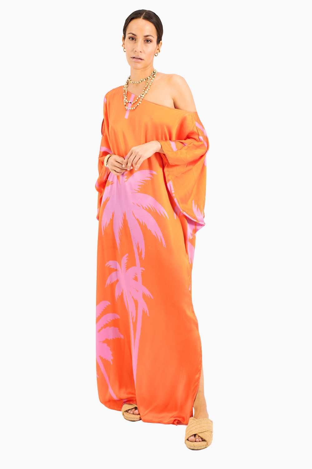 This relaxed silk kaftan makes an effortlessly bold statement. It’s your go-to for beach dinners, warm nights, and getaway dressing.