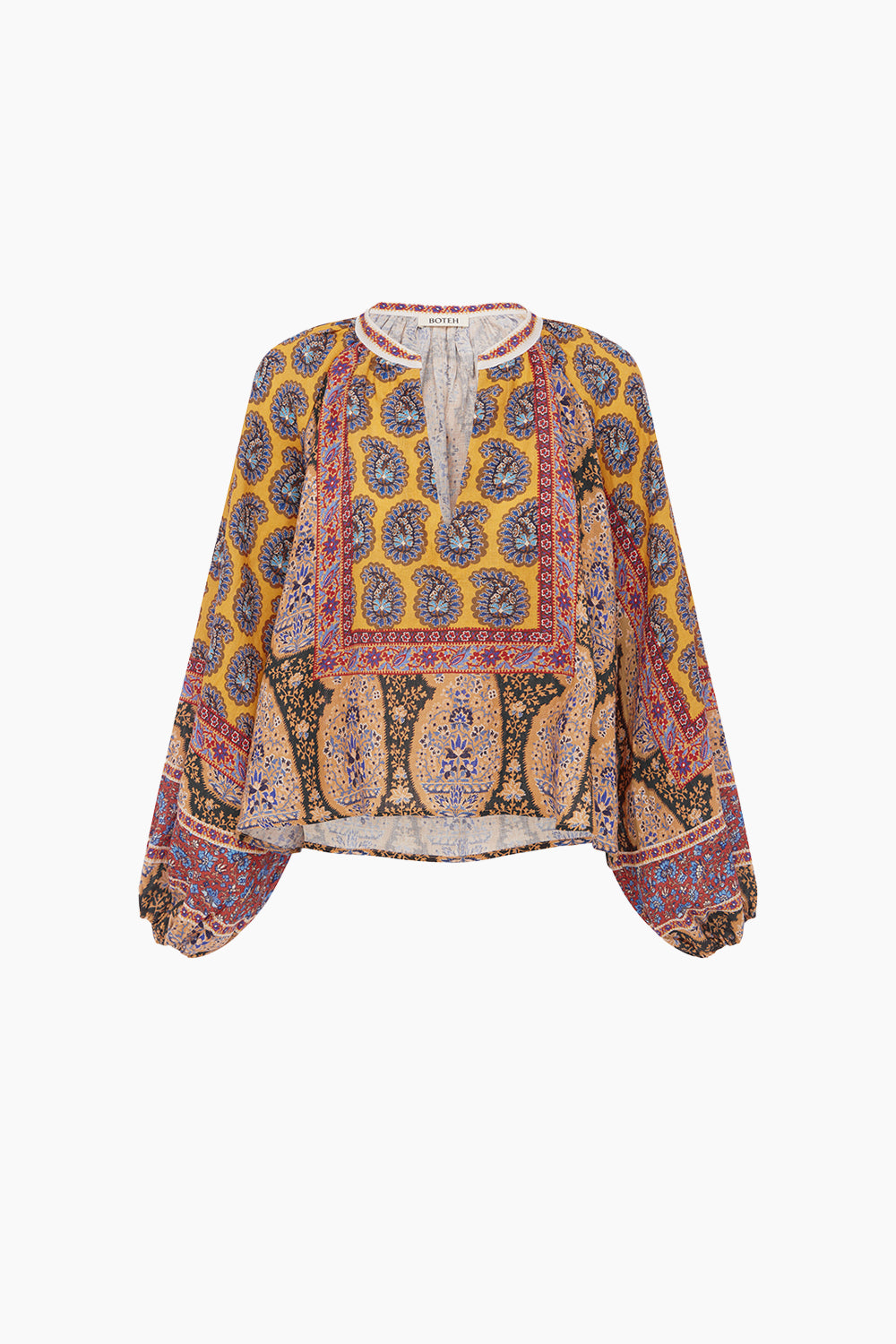 Elevate your style with our signature smock blouse, featuring a graceful gathered neckline and soft elastic sleeve cuffs for a perfect fit.
